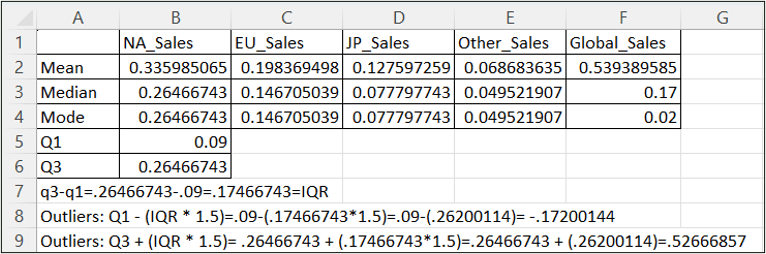 Solution: Summarized the data and used “quartile.exc” function to identify outliers.