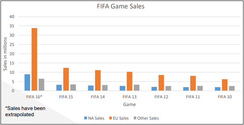 The FIFA Soccer video game is the main contributor to the increase in sales in Europe.